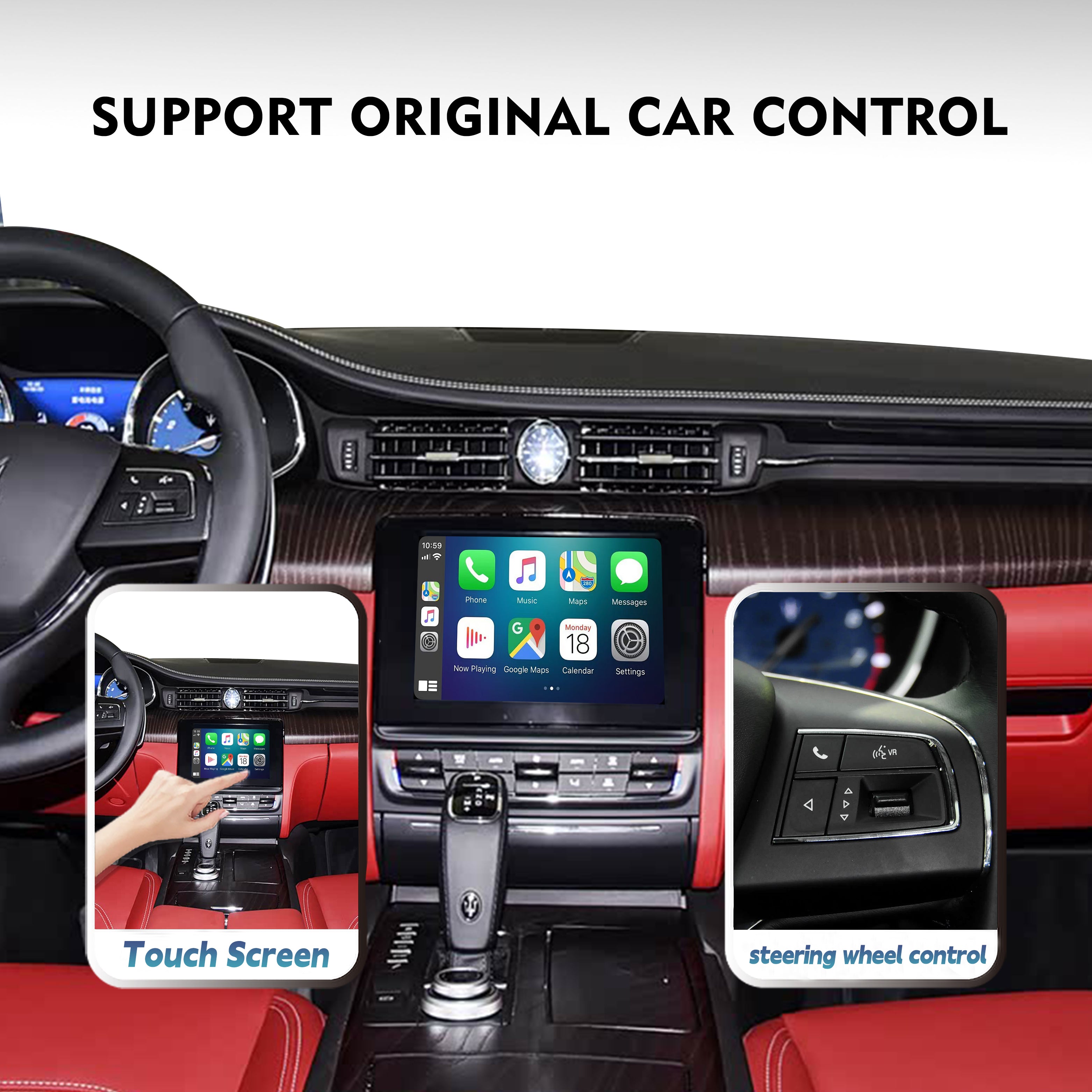 Upgrade your 2017-2020 years Maserati system with our Wireless CarPlay & Android Auto Interface. Integrate smartphone features natively into your factory touchscreen while preserving 100% OEM functionality—including iDrive controller, steering wheel buttons, and original vehicle settings.