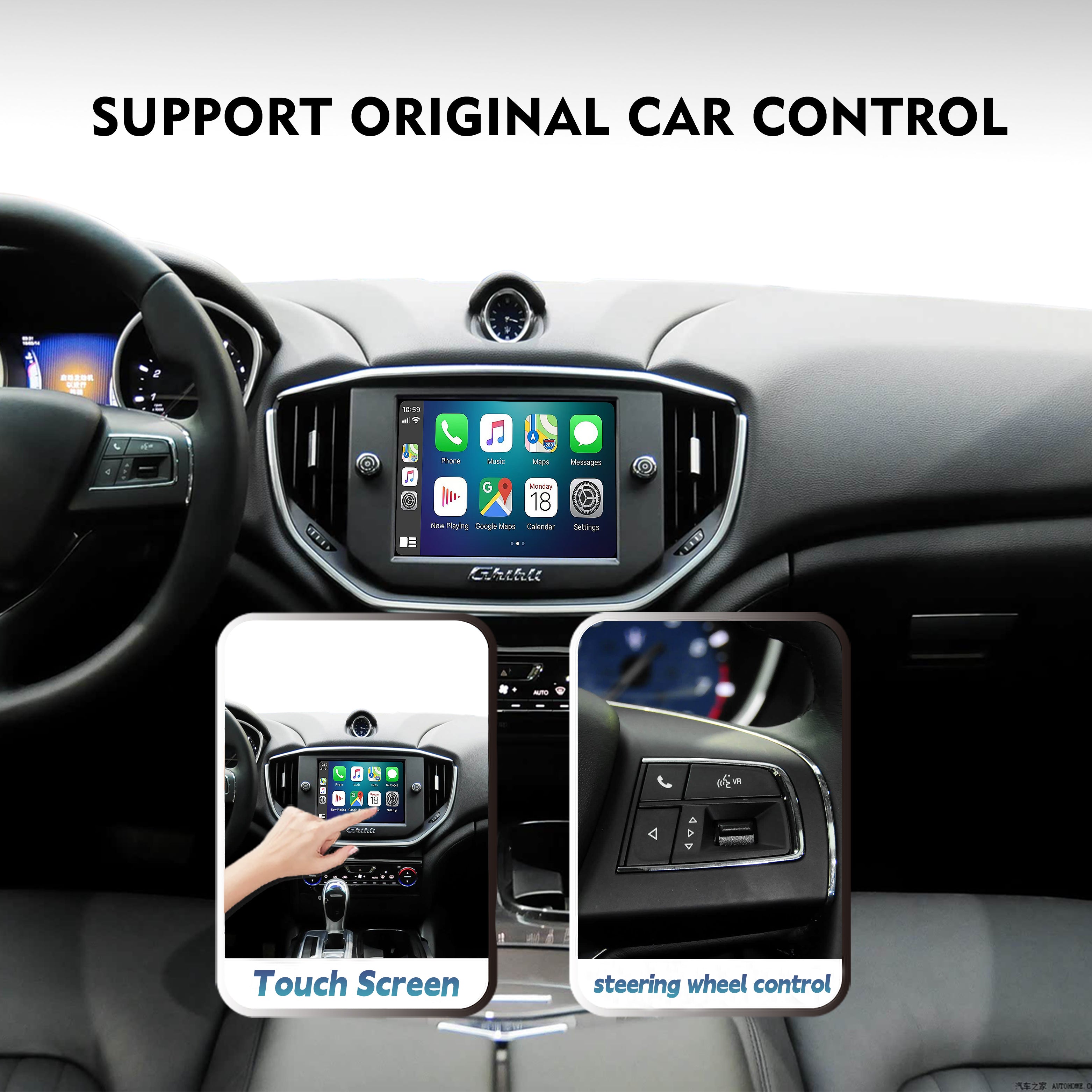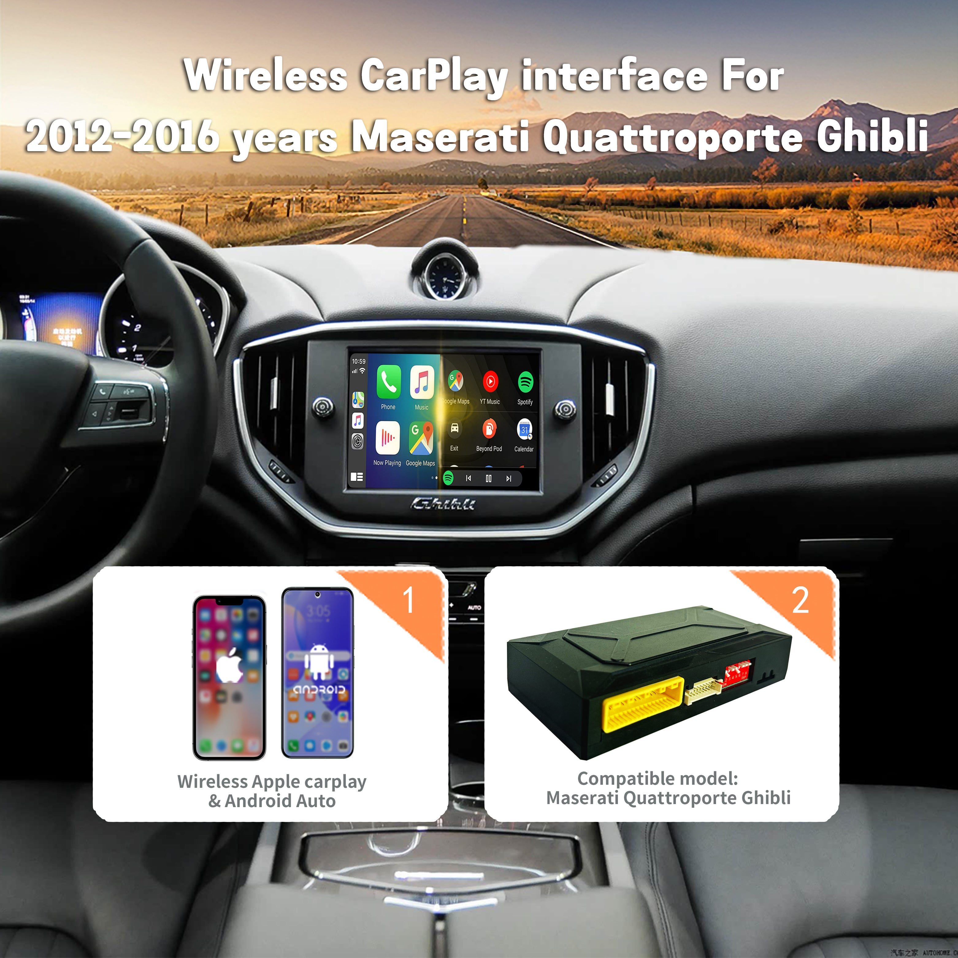 Upgrade your 2012-2016 years Maserati system with our Wireless CarPlay & Android Auto Interface. Integrate smartphone features natively into your factory touchscreen while preserving 100% OEM functionality—including iDrive controller, steering wheel buttons, and original vehicle settings.
