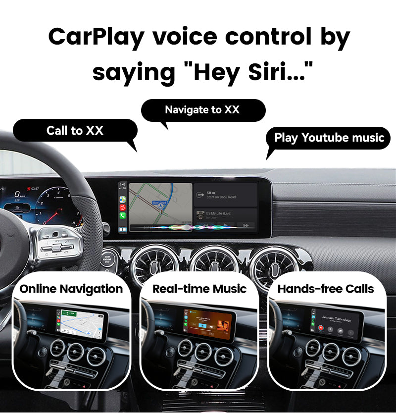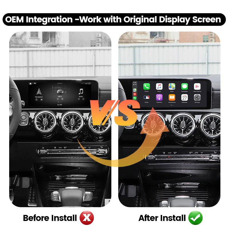 Upgrade your 2019–2023 Mercedes-Benz with NTG 6.0 system with this CarPlay Interface. It adds wireless Apple CarPlay, Android Auto, and screen mirroring — while retaining your original MBUX screen and controls.