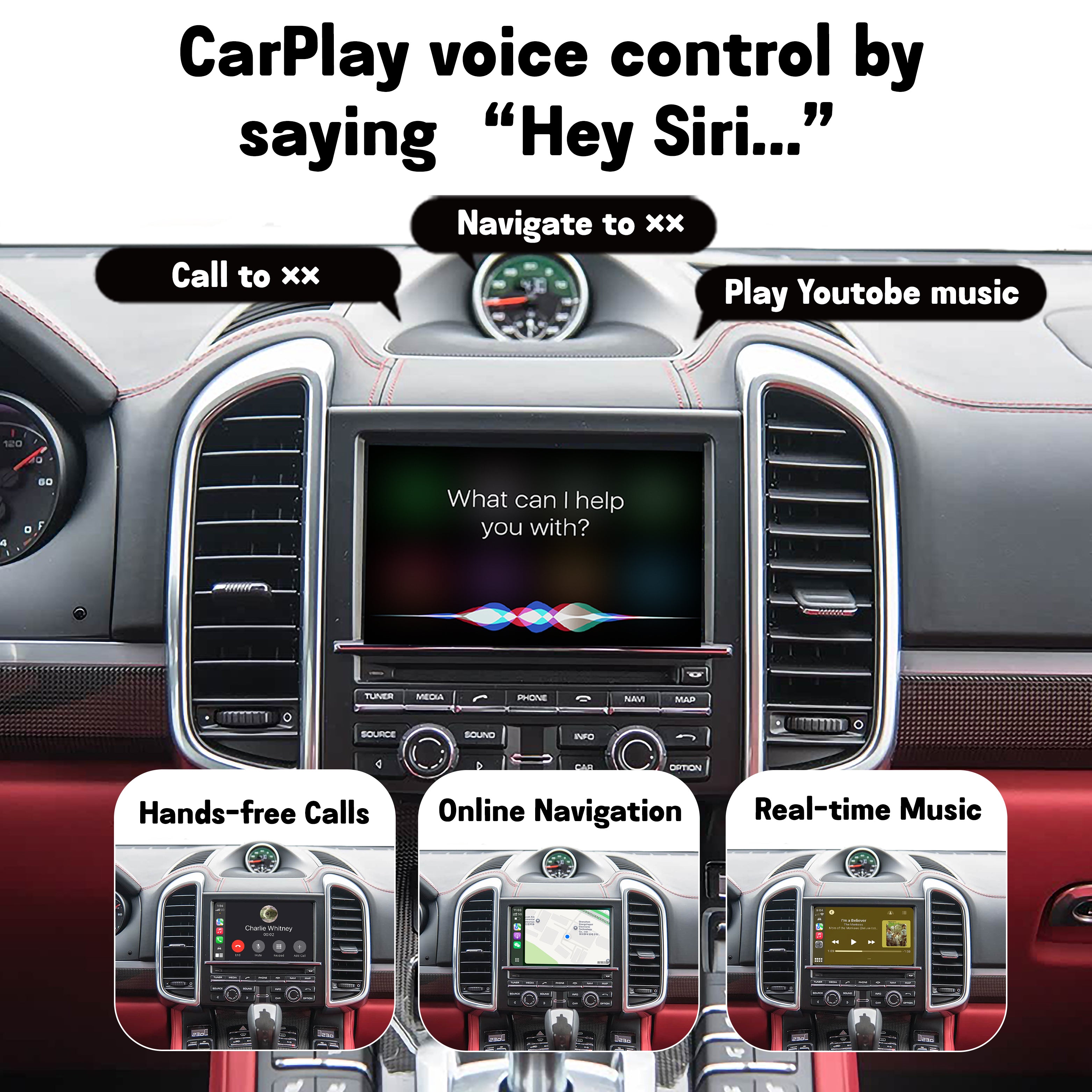 Upgrade your 2010-2016 years Porsche PCM3.1 system with our Wireless CarPlay & Android Auto Interface. Integrate smartphone features into your factory screen while preserving OEM functionality—including steering wheel buttons, rotary knob, and original vehicle controls.